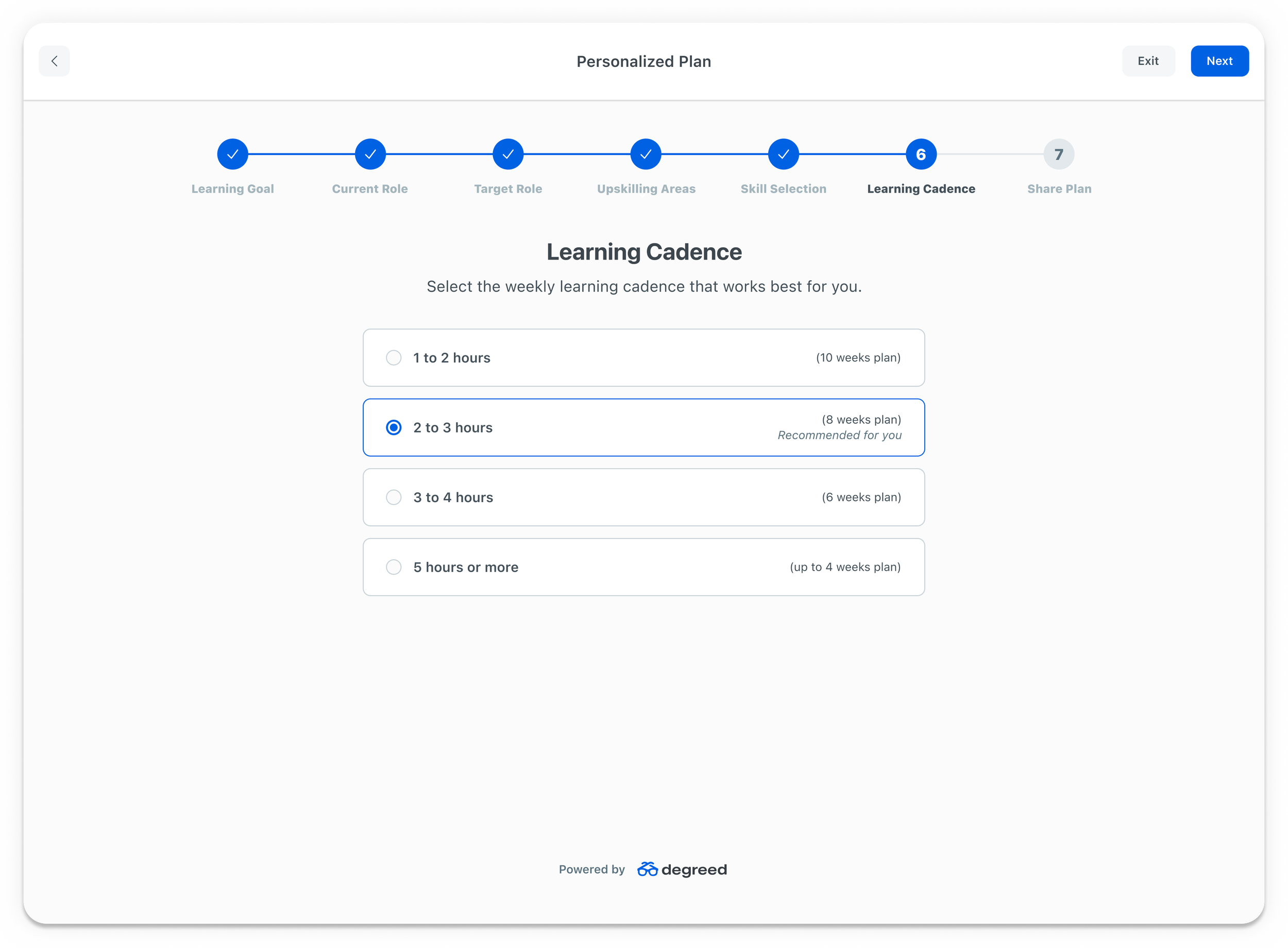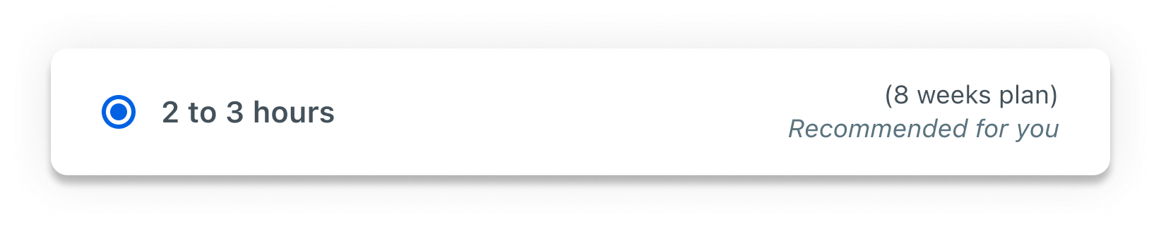 In this step, we ask learners to share details about their typical weekly learning cadence. This information helps us determine: